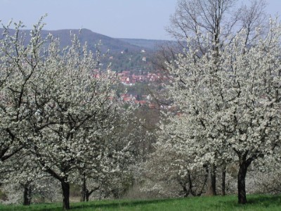 Über die Grenzen des Altlandkreises Hersbruck hinaus ist der Ellenbacher Hutanger wegen seiner Schönheit zur Zeit der Kirschblüte bekannt.