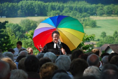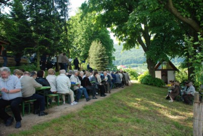Einmal pro Jahr findet an der Kapelle, inmitten dieser herrlichen fränkischen Landschaft, ein Gottesdienst statt.